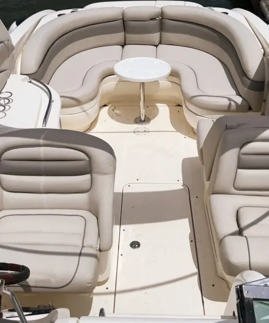 Planning your Goa yacht booking? Sea Heiress offers seamless yacht booking in Goa via Captain of Ports jetty, Panjim. Powered by twin 300 BHP high-performance engines, cruise at thrilling 30+ knots past iconic Panjim bridges, playful dolphins, and lush riverside landscapes. The spacious cockpit features luxurious curved white quilted leather sofas, central cocktail table, and full helm controls. Step inside the fully air-conditioned cabin to discover panoramic windows, bolstered seating, reading lights, and fans—your personal sanctuary during the 1-hour anchoring retreat.